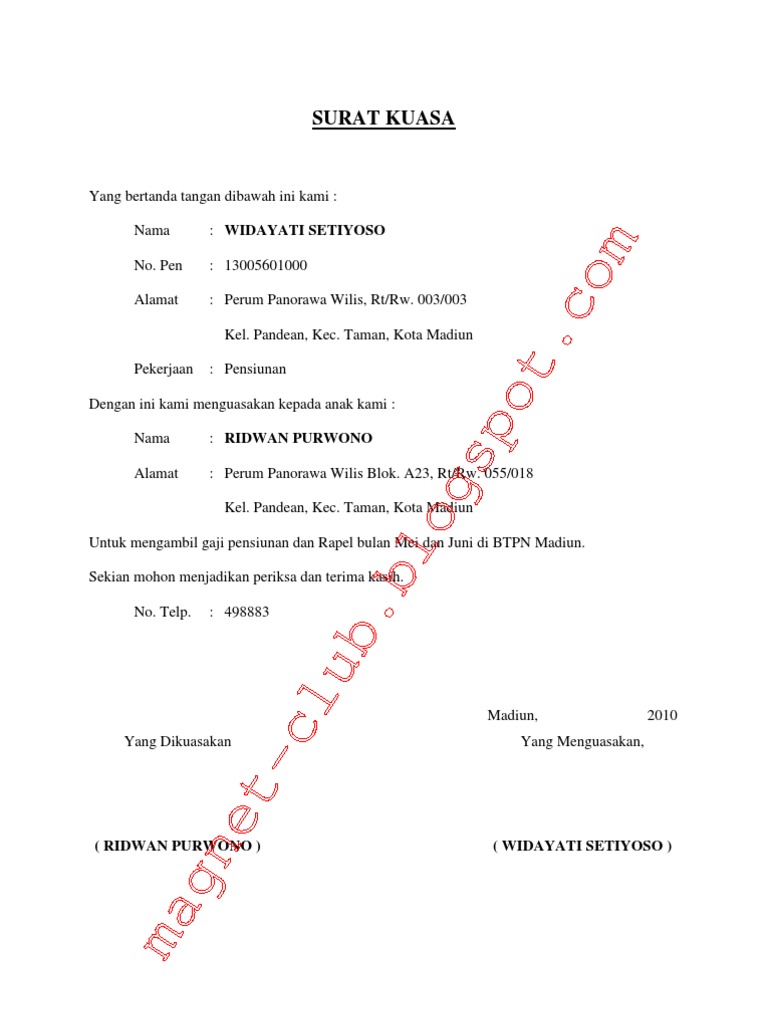 Contoh surat kuasa pengambilan uang di bank. Ada juga sebagian orang yang sudah sempat memiliki pekerjaan di daerah lain, sehingga tidak memiliki waktu lagi untuk mengambil ijazah. Oleh sebab itu, perlu adanya surat. Contoh surat wakil ambil sijil. Terlebih, sering terjadi perselisihan dan bahkan penyalahgunaan wewenang terkait hak atas warisan. Ini syarat dan cara buatnya. Surat kuasa pengambilan gaji bukan hanya bisa dipergunakan untuk mengambil gaji surat kuasa ini juga bisa dipergunakan untuk mengambil gaji pensiun, yang pada umumnya harus diambil di memang ada beberapa orang yang mungkin ingin menggunakan contoh surat kuasa pengambilan. Surat keterangan domisili (skd) adalah surat pernyataan dari pejabat yang berwenang sebagai bukti bahwa pendatang telah melapor dan memiliki. Pendapat ini diwakili oleh sebagian. Contoh surat kuasa pengambilan bpkb ~ jika anda ingin mewakili orang lain untuk mengambil namun jika anda tidak datang sendiri ke fif, anda bisa mewakilkanya pada orang lain dengan menyertakan surat kuasa beserta ktp asli berikut ini adalah surat kuasa pengambilan bpkb di fif. Surat memohon kebenaran mengadakan program via www.scribd.com. Jika surat tilang hilang, kamu harus sedikit direpotkan dengan proses pengurusan ke pihak kepolisian. Surat internal, surat yang asalnya dari dalam suatu kantor/ perusahaan dan ditujukan ke divisi lain di.